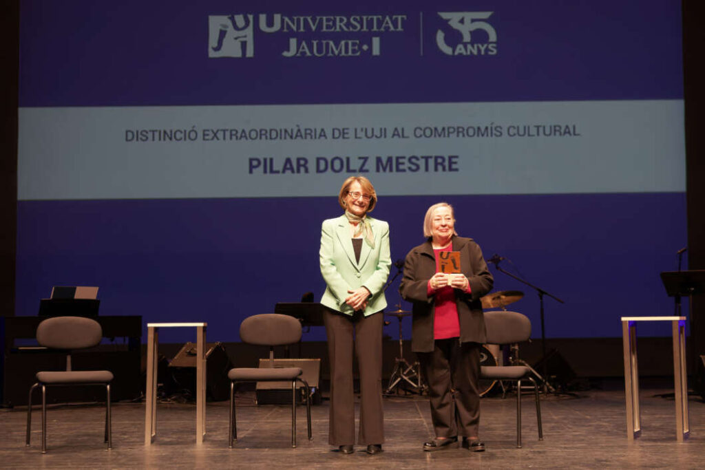 Així mateix, Pilar Dolz Mestre ha rebut la distinció extraordinària de l'UJI per ser una de les figures més decisives i apassionades del panorama cultural contemporani de Castelló. Artista, gravadora i galerista, la seua trajectòria és el testimoni d'una entrega absoluta a la democratització de l'art i a la vertebració d'un pensament crític a través de l'estètica. Especialitzada en el gravat calcogràfic, la seua obra, caracteritzada per un domini tècnic impecable i una poesia visual profunda, ha sigut exposada tant a escala nacional com internacional.