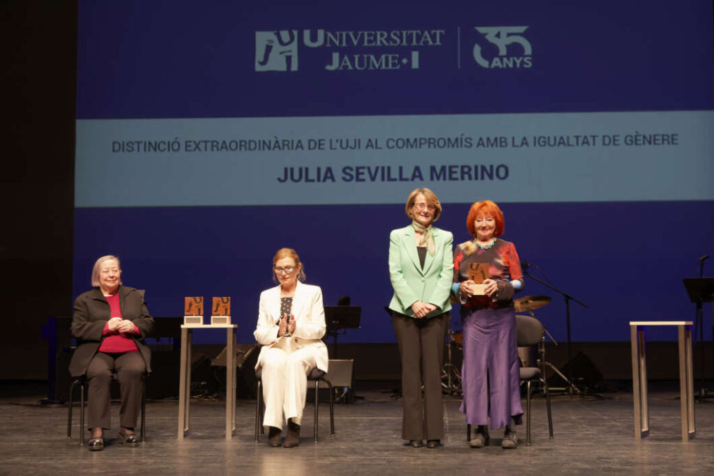 Finalment, l'UJI ha atorgat la distinció extraordinària a Julia Sevilla Merino, una figura imprescindible per a entendre l'evolució del dret amb perspectiva de gènere a Espanya. Jurista, feminista i referent acadèmic, la seua trajectòria ha estat dedicada a demostrar que la democràcia no és plena si no garanteix la representació i els drets efectius de les dones en totes les esferes del poder. La seua tasca ha sigut fonamental per a l'impuls de les polítiques públiques d'igualtat, assessorant i participant en la redacció de marcs normatius que avui es consideren fonamentals.
