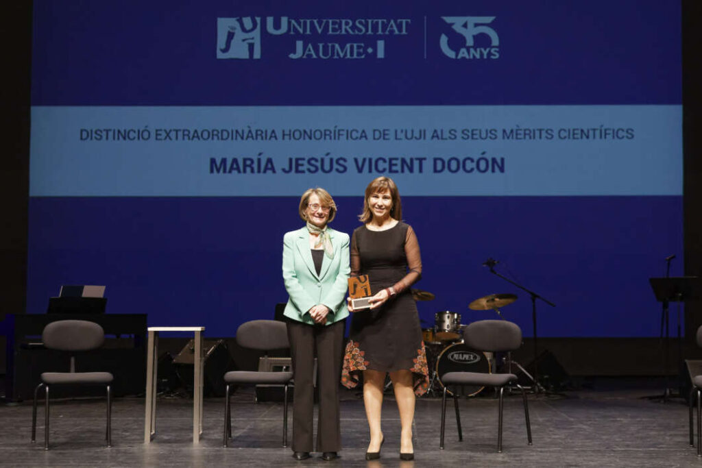 Pel que fa als reconeixements, María Jesús Vicent Docón ha rebut la distinció extraordinària honorífica per la seua trajectòria en l'àmbit biomèdic. María Jesús Vicent és doctora en Química per l'UJI, amb especialització en química supramolecular i materials i ha realitzat estades internacionals en la Universitat de Califòrnia (Berkeley) i la Universitat de Cardiff, amb una beca Marie Curie. Actualment, dirigeix el Laboratori de Polímers Terapèutics i el Programa de Càncer del Centre d'Investigació Príncep Felip, i coordina la Plataforma Europea de Cribratge. És professora de postgrau en l'UJI i codirectora de la Unitat Mixta en Teràpies Avançades en Oncologia. Ha publicat més de 160 articles científics, és titular de 15 patents i cofundadora de l'empresa Curapath.