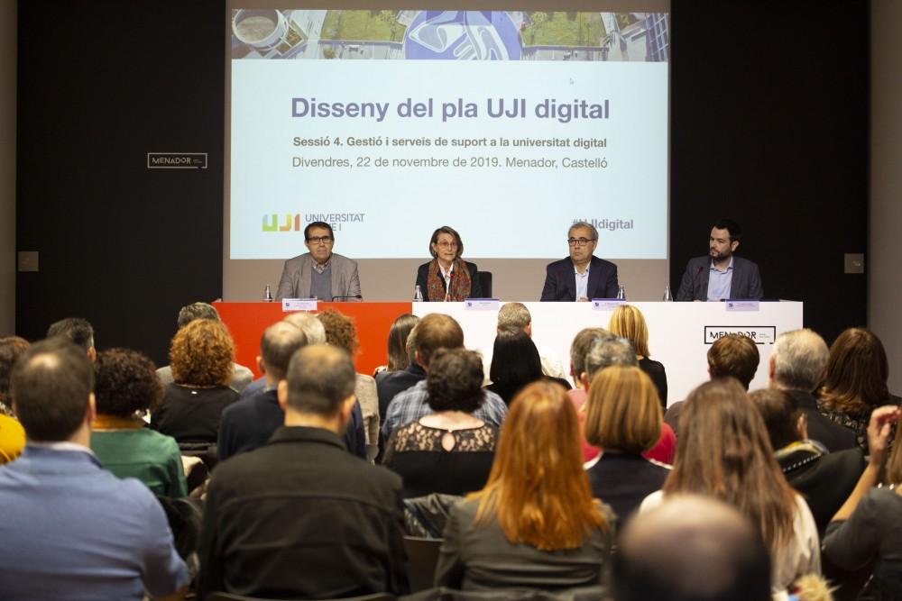 La Universitat Jaume I ha celebrat al Menador espai cultural l'última sessió de treball per al disseny del Pla UJI Digital, un procés participatiu que s'ha desenvolupat al llarg de l'any 2019 per tal d'establir l'horitzó de futur en el procés de transformació digital de la universitat pública de Castelló.
