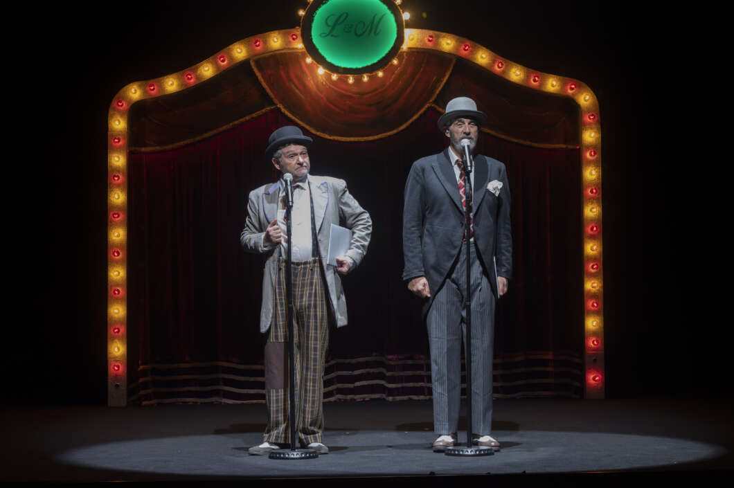 La comèdia està protagonitzada per dos reconeguts actors valencians, Alfred Picó i Carles Alberola. Els dos representen dos còmics, dos velles glòries que reben l'oferta de treballar junts en un homenatge a un company mort.