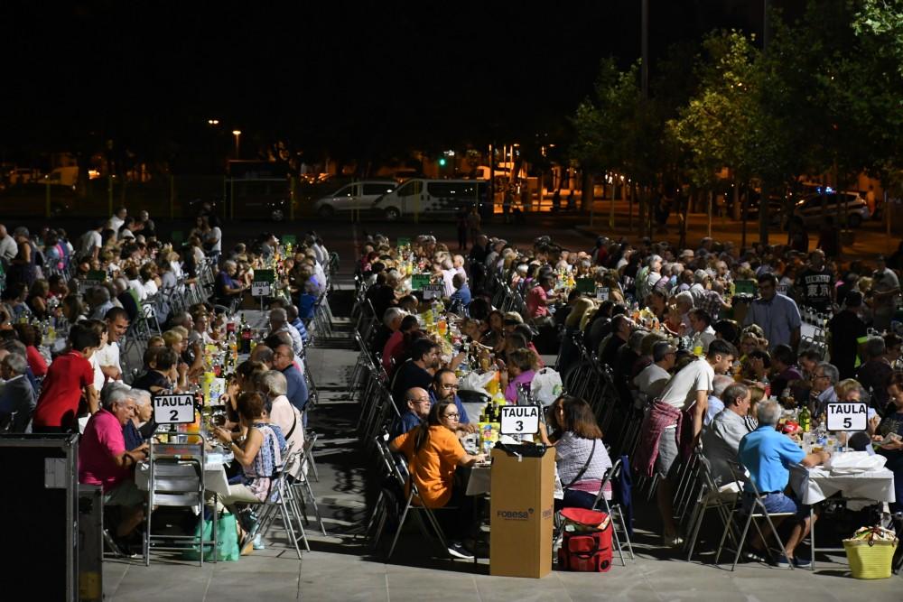 El macrosopar de veïns i veïnes de Vila-real congrega a més de 1.200 persones a la plaça del Llaurador aquesta nit. La regidora de Participació Ciutadana, Miriam Caravaca, ha acompanyat les associacions en el sopar de germanor de les festes.