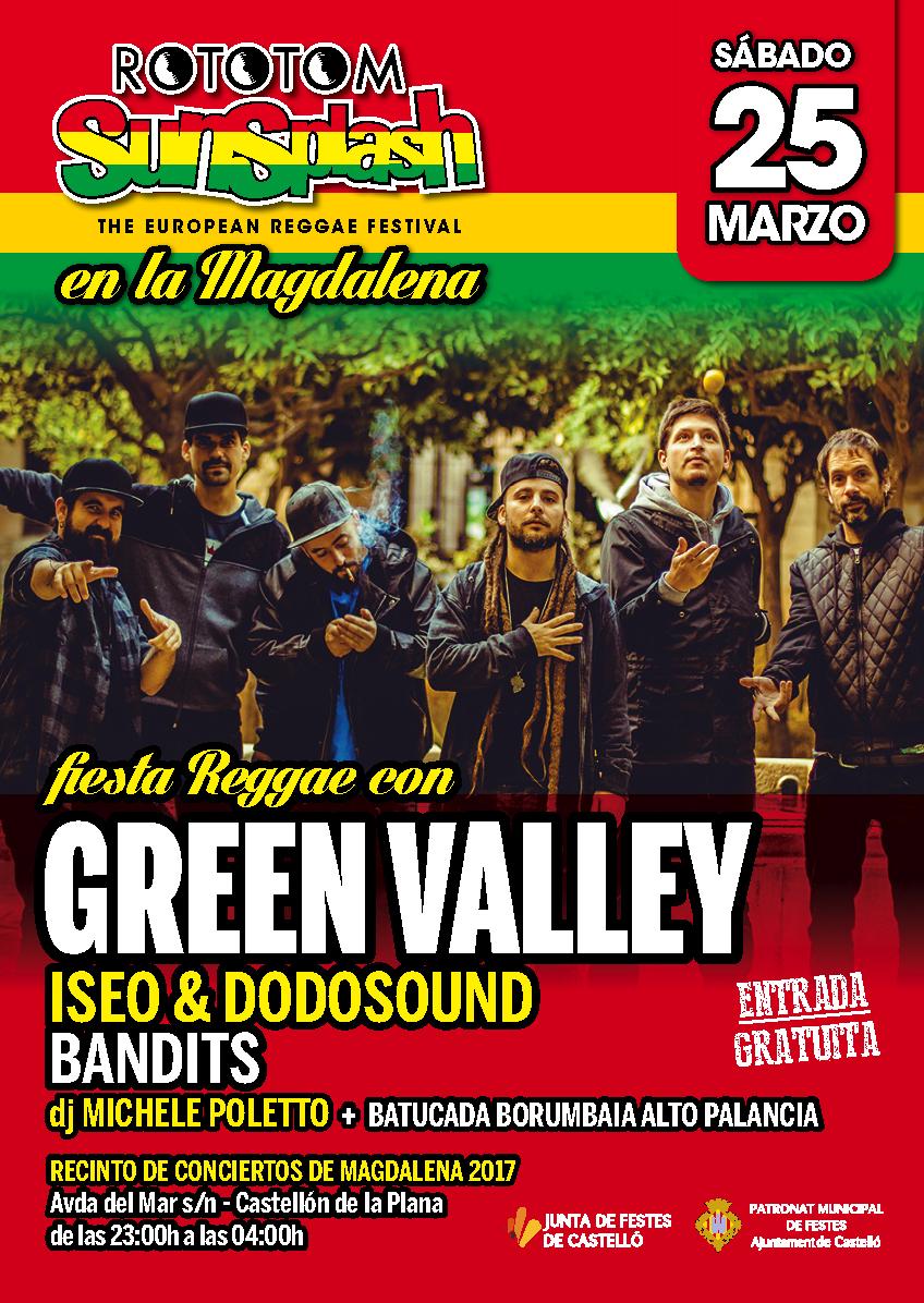 cea16e67-f878-4e99-9769-92b44c68a3b6El calendario de Launch Parties que el Rototom Sunsplash está preparando para presentar su próxima edición empieza a tomar forma. Castellón será la primera parada de esta gira especial, que llevará la mejor música reggae a diferentes ciudades de España y Europa. En concreto, el sábado 25 de marzo el recinto de conciertos de Castellón acogerá, coincidiendo con las Fiestas de la Magdalena, un macroconcierto gratuito que contará con las actuaciones de Green Valley, Iseo & Dodo Sound, Bandits, el DJ Michele Poletto y la batucada Alto Palancia.