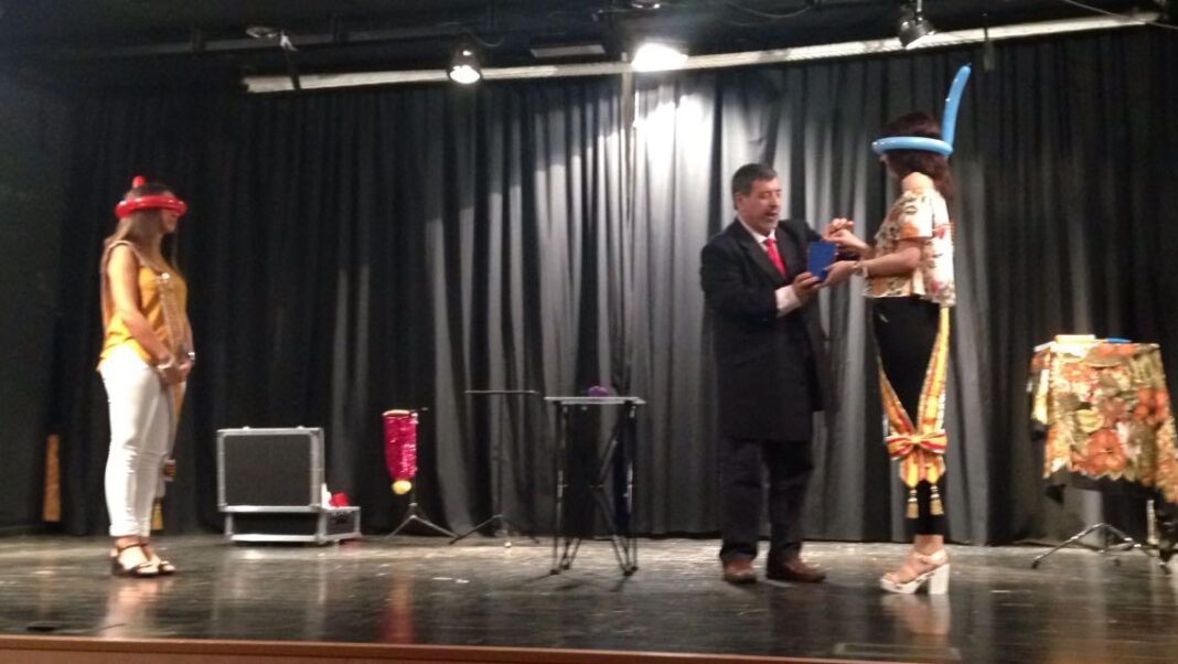 Seguidamente, el Mago Paco ha asombrado a los asistentes con una actuación que ha combinado el mundo de la magia y las matemáticas. Uno de los momentos más destacados ha sido el truco que ha realizado con la participación de la Reina y Damas de las fiestas sobre el escenario.