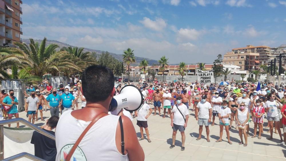Los vecinos de Oropesa se han manifestado de nuevo en la playa de Morro de Gos a las 12 horas para pedir, un verano más, que se frene la regresión de sus playas.