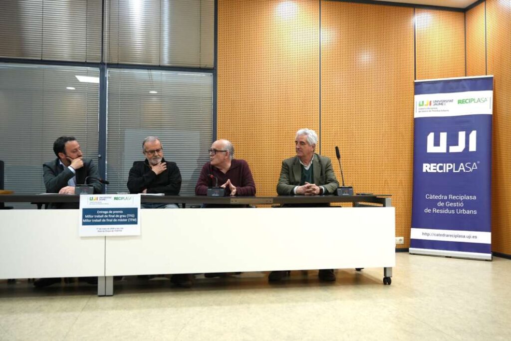 La Càtedra Reciplasa de Residus Urbans de la Universitat Jaume I (UJI) ha concedit els premis als millors treballs de final de grau (TFG) i de final de màster (TFM) del curs, uns guardons que reconeixen investigacions centrades en la sostenibilitat energètica i la millora dels processos de gestió de residus. L'acte de lliurament ha tingut lloc a la sala de graus de l'Escola Superior de Tecnologia i Ciències Experimentals (ESTCE).