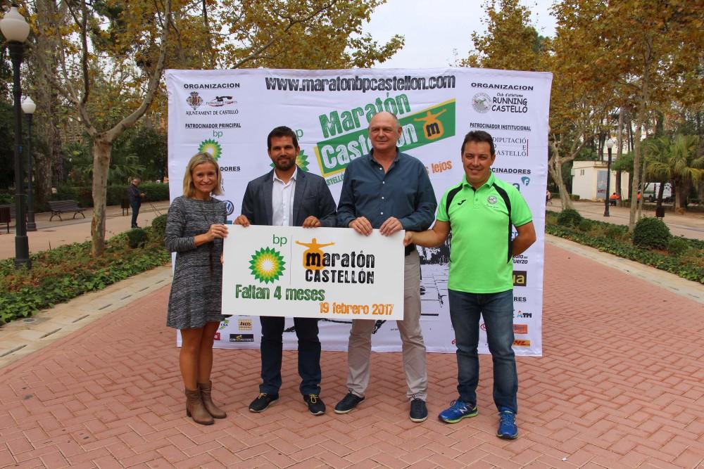 El Ayuntamiento de Castellón ha iniciado la cuenta atrás para la celebración de la Maratón, que este año renueva el patrocinio de BP Oil España. Así lo han anunciado el concejal de Deportes, Enric Porcar, en representación del Patronat Municipal d’Esports; Juan Carlos Navarro, responsable de comunicación y relaciones externas de BP en Castellón, y Paqui Gil y Juanma Medina, del Club d’Atletisme Running Castelló.