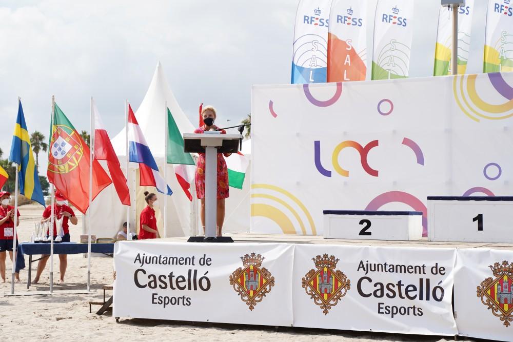 L'alcaldessa de Castelló, Amparo Marco, ha participat en l'acte de clausura del Campionat d'Europa per Nacions de Salvament i Socorrisme Júnior i Absolut que s'ha celebrat des de diumenge passat en la Piscina Olímpica Municipal de Castelló i a la platja del Gurugú.
