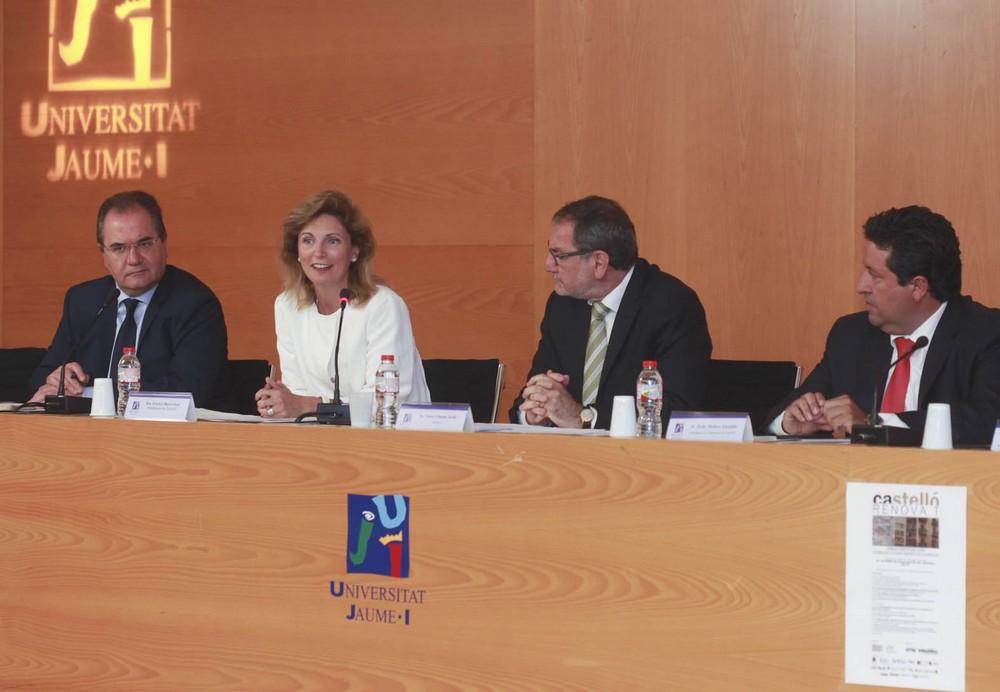 La alcaldesa de Castellón, Amparo Marco, ha inaugurado hoy la jornada “Castelló Renova't”, organizada por el Colegio Territorial de Arquitectos de Castellón y la Fundación f2e, junto al rector de la Universitat Jaume I, Vicent Climent; el presidente de la Diputación, Javier Moliner; el presidente del Colegio de Arquitectos, Jaume Prior, y el gerente de la Fundación de Eficiencia Energética, Víctor Gaceta.