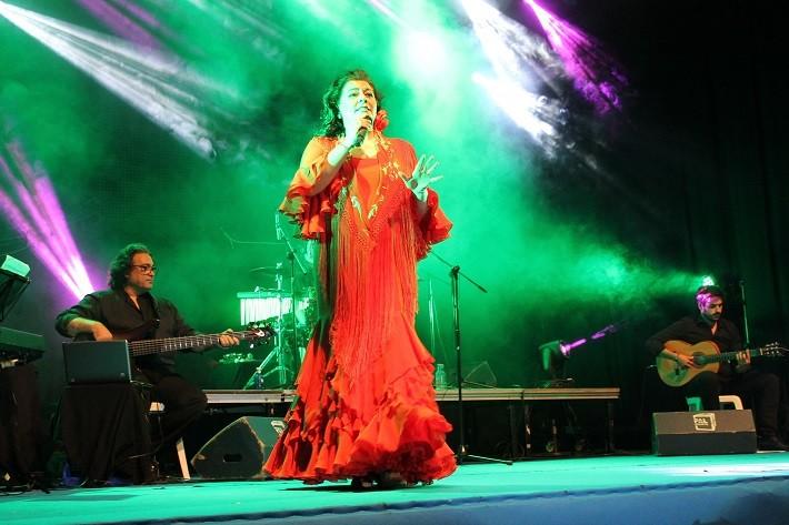 La reina de las sevillanas se subió al escenario dispuesta a hacer disfrutar a un auditorio que asistió al primero de los conciertos que incluye la programación de las fiestas patronales en honor a la Virgen de la Paciencia.