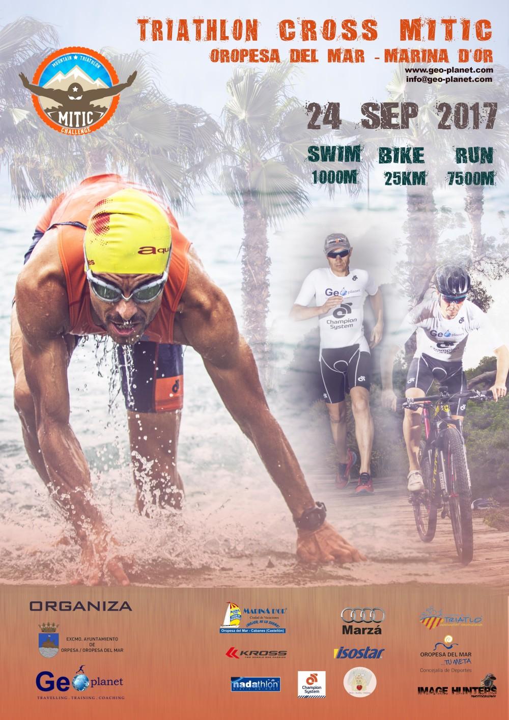 Este domingo 24 de septiembre Marina d’Or se convertirá en la meta del Triatlón Cross Mitic que iniciando su recorrido a nado desde el puerto deportivo de Oropesa del Mar pondrá su punto y final en la Playa Verde de la Ciudad de vacaciones no sin antes hacer un recorrido de 25 kilómetros por un entorno privilegiado para la práctica del deporte.