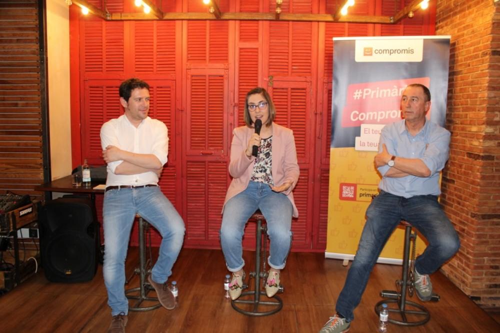 Compromís celebra la presentación de candidatura de Marta Sorlí a las primarias para el Congreso en un acto con Ignasi Garcia, candidato a la alcaldía  i Joan Baldoví, portavoz de la formación en el Congreso.