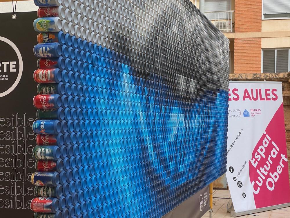 ¿Unos labios?, si, pero cuando el visitante se acerca comprueba que no es ninguna pintura, sino un inmenso puzzle de piezas pintadas combinadas con artificio... y si se aproxima un poco más, descubrirá maravillado o desconcertado, que esas piezas de colores son envases de aluminio de todo tipo de bebidas y refrescos... La obra se llama: Pixelata. Pixelata es una pieza de Recycled Art creada por photoAlquimia para su posterior cesión a la ciudad de Castelló.