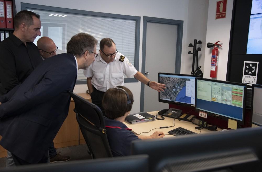 El presidente de la Diputación, José Martí, ha visitado las instalaciones centrales del Consorcio Provincial de Bomberos y el Centro de Coordinación Provincial, en compañía del diputado provincial responsable de este servicio, Abel Ibáñez, y su asesor, Toni Ripollés.
