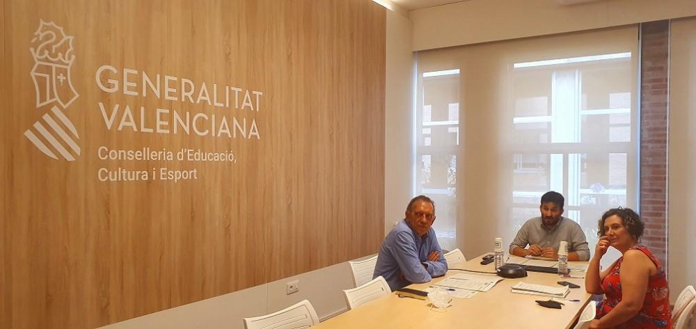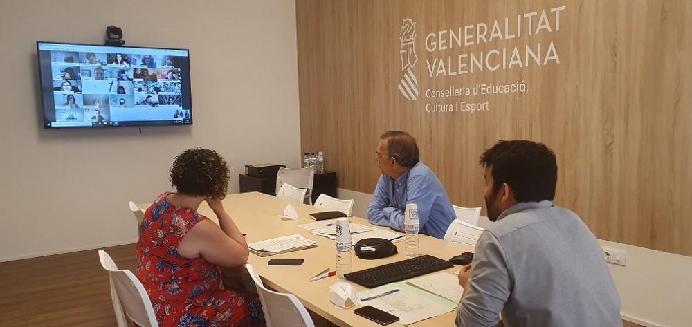 El conseller de Educación, Cultura y Deporte, Vicent Marzà, junto a los secretarios autonómicos de Educación y FP, Miquel Soler, y de Cultura y Deporte, Raquel Tamarit, se ha reunido con representantes de la Federación Valenciana de Municipios i Provincias (FVMP) y de las tres diputaciones para compartir y explicar las líneas de trabajo de cara a la preparación del próximo curso, el trabajo que está realizando la Conselleria en la preparación de una línea extraordinaria de 9 millones de euros en ayudas adscritas a los ayuntamientos valencianos para organizar actividades extraescolares y de refuerzo y el paquete de medidas culturales 'reaCtivem' diseñado por la Conselleria.