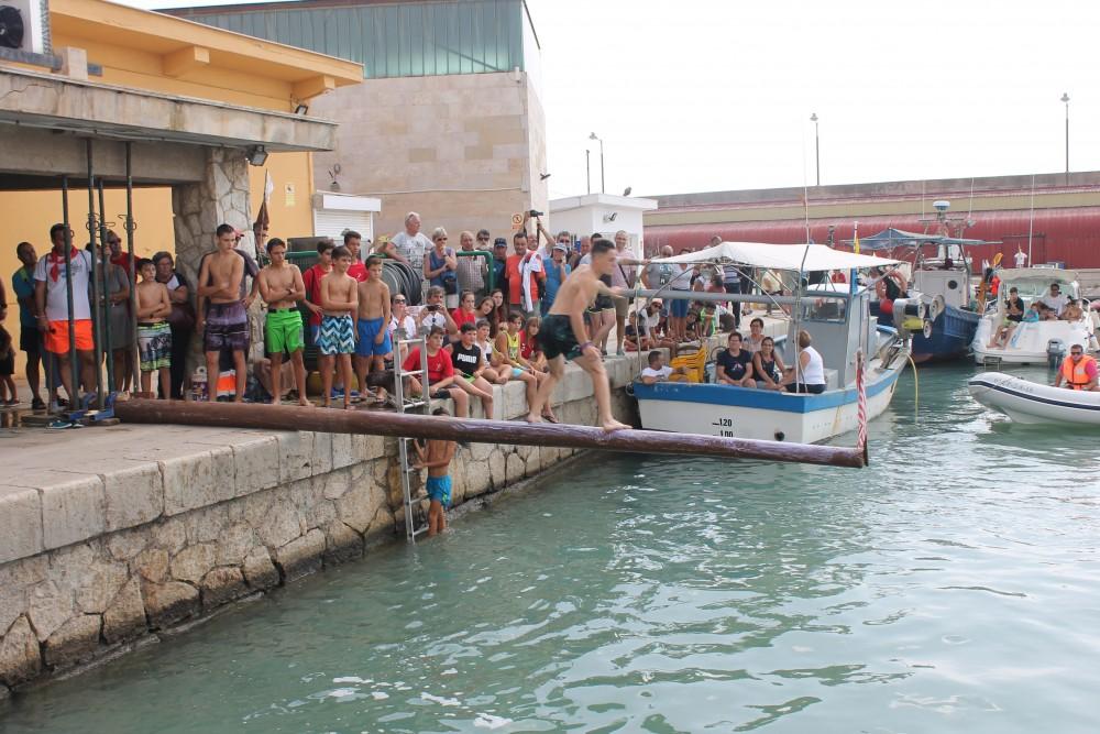 En el reparto de raciones han participado la Reina y su Corte de honor, el alcalde, miembros del cabildo de la Cofradía y la Corporación Municipal. Al finalizar, en el mismo recinto portuario, los pequeños y mayores del municipio han podido disfrutar de los juegos acuáticos infantiles como el palo enjabonado o la tirada de objetos hinchables al agua.