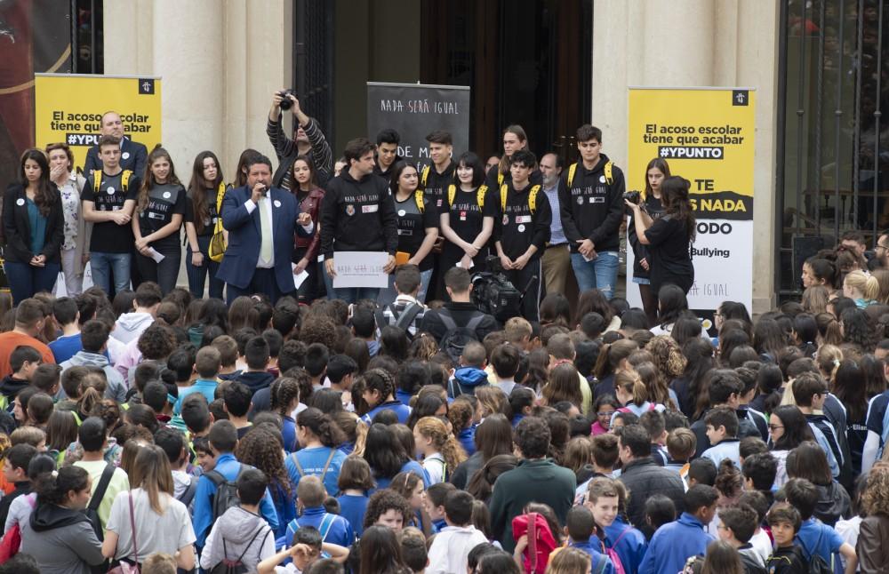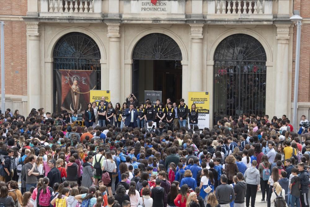 La Diputación de Castellón ha respaldado el mayor acto contra el acoso escolar en la provincia que ha concentrado en la plaza Las Aulas hasta a 1.400 jóvenes castellonenses para rechazar el bullying en el Día Internacional contra el Acoso Escolar. Junto al director y creador de la película ‘Nada Será Igual’, el castellonense Víctor Antolí, y los actores y atrices del film, el presidente de la Diputación, Javier Moliner, ha alzado la voz contra esta problemática que tanto preocupa al Gobierno Provincial y contra la que trabaja desde hace ya años respaldando este proyecto. Así, el Gobierno Provincial ha contribuido a convertir el centro de la ciudad de Castelló en el epicentro de una ambiciosa iniciativa educativa con la que colabora a la hora de ayudar a concienciar a todos los jóvenes de la provincia en la lucha contra la violencia juvenil en las aulas a través de la gran pantalla y conseguir que la provincia sea un territorio libre de acoso