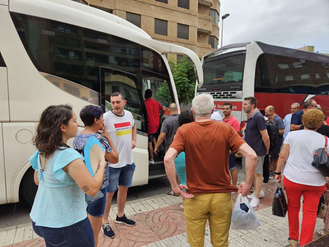 Dos autobuses llenos de aficionados taurinos de Onda han salido esta tarde rumbo a la plaza de toros de Valencia para presenciar la corrida de la Feria de Julio y, especialmente, apoyar al torero local Paco Ramos. Ante la petición de los ondenses, el Ayuntamiento ha habilitado dos autobuses para que puedan disfrutar del espectáculo con seguridad. Ramos lidiará junto a los diestros Fernando Robleño y Jesús Chover, dos astados del prestigioso hierro de Miura.
