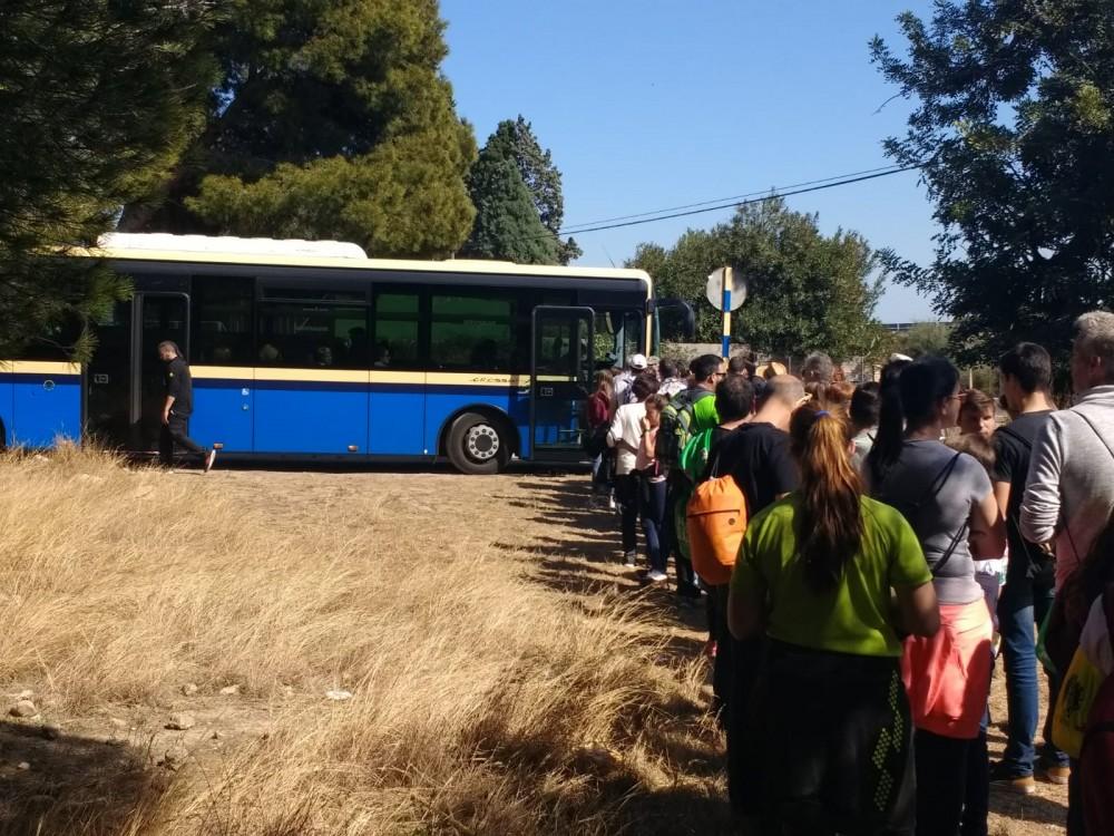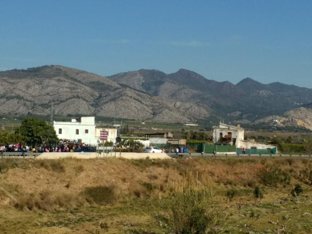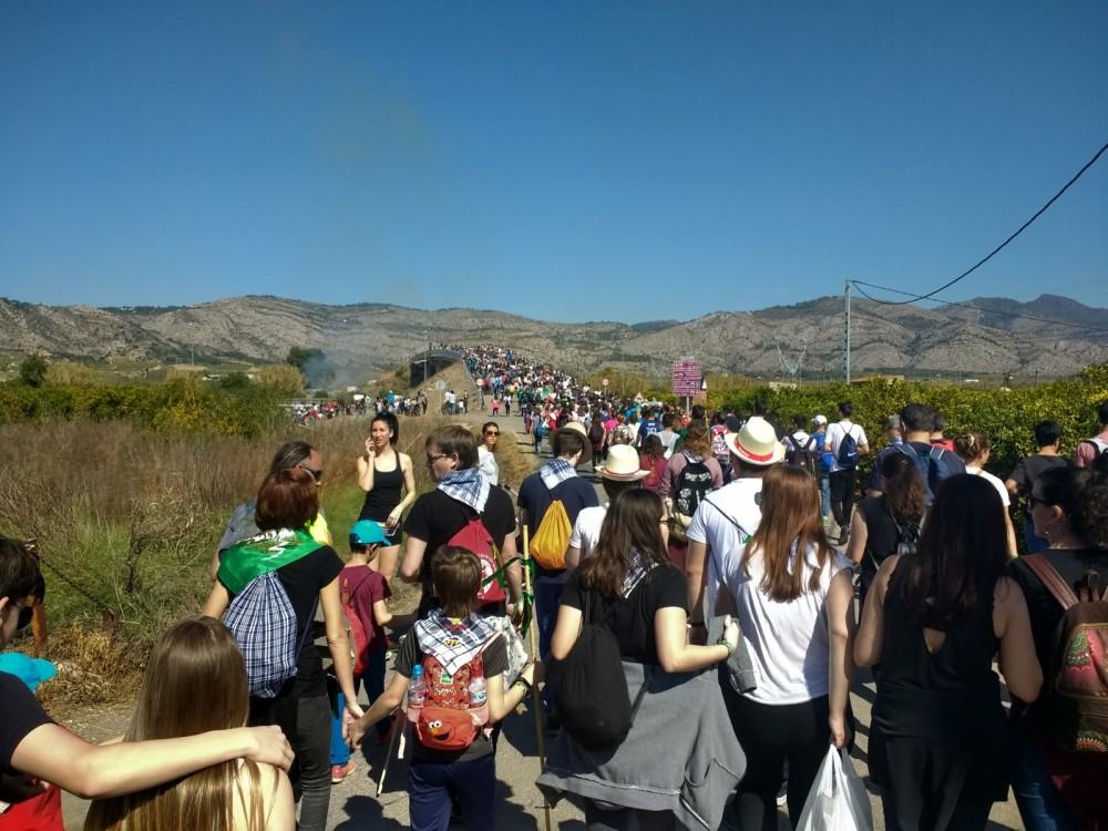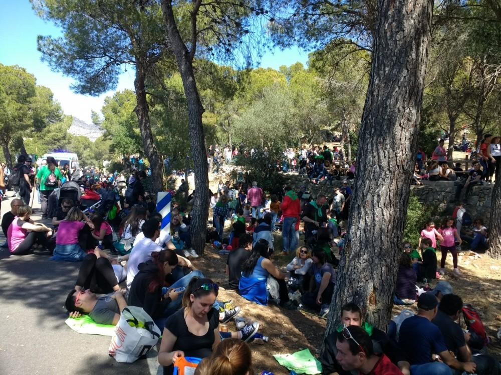 Y luego, de nuevo, colectivos en masa, que cruzaban la carretera y ascendían ya la falda de la montaña con el ermitorio de la Magdalena ante la mirada.