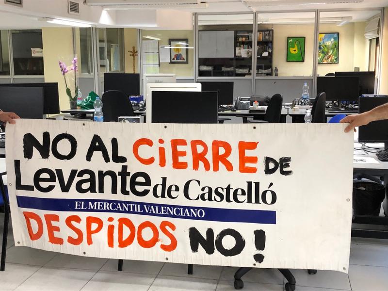 Levante de Castellón ha cerrado sus puertas. Más de 300 personas se han concentrado frente a la entrada del diario para solidarizarse con los trabajadores y protestar contra el cierre de la cabecera. Políticos de las diferentes agrupaciones, sindicatos, lectores, seguidores, pero sobre todo, periodistas y compañeros de medios de comunicación, han expresado su tristeza por la desaparición de un medio de comunicación.