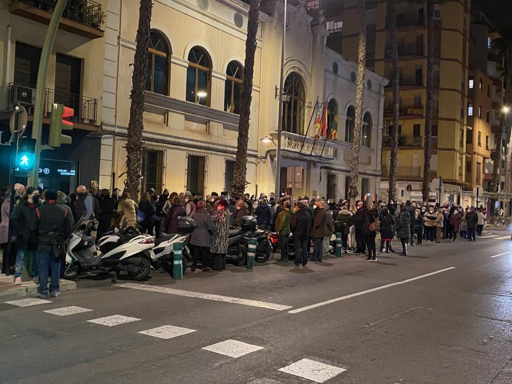 Aún así, casi media hora antes de la hora fijada, ya se concentraban algunos de los vecinos que luego integrarían el grueso de la manifestación. Entre ellos, los representantes de las diferentes asociaciones de la Marjalería, Capuchinos, sindicatos, colectivos vecinales como el de Rafalafena y Lidón, y también muchos políticos, la mayoría del PP, aunque tampoco faltaban los de Ciudadanos y VOX.