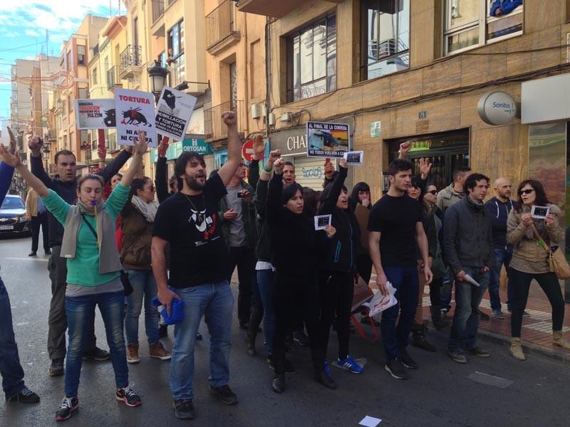 Fue entonces cuando aparecieron los anti taurinos, apenas, 20 personas, que comenzaron a gritar contra la manifestación, a llamar asesinos a los manifestantes, y a pedir la abolición de la tauromaquia.