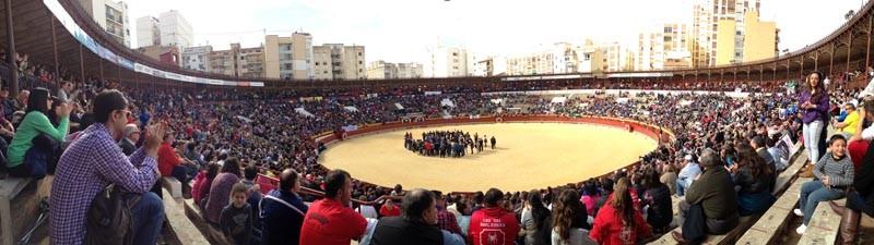La Plaza de Toros de Castellón no llegó a llenarse por completo, pero sí hizo más de tres cuartos, lo que arrojaba un cálculo de más de 6.000 personas. Los que habían integrado el frente de la manifestación salió al centro del coso. Se rindió homenaje al toro, pero también a todos cuantos, con el toro forman parte de la fiesta, y los que además hicieron acto de presencia en la manifestación.
