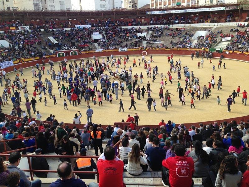 Terminados los parlamentos, se realizó un encierro infantil, con cuatro armazones con ruedas y cuernos que simulaban toros. Todos los niños de la plaza fueron llamados a bajar a la arena, a participar del encierro, que discurrió entre la calle Pérez Galdós y el interior del coso. Algunos de los pequeños, también hicieron sus pinitos, manejando capas y capotes. Hubo espectáculo, regalos, y finalmente una exhibición de recortadores.