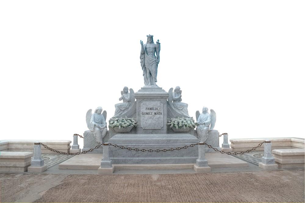 El Mausoleo de la familia Gómez Mata, desde su construcción hace algo más de un año se ha convertido en un referente en el arte sacro de la provincia. Pero el resultado final del monumento y el cariño con se ha llevado a cabo ha traspasado todas las fronteras. El conjunto que se ubica en una parcela de 64 metros cuadrados, en la parte central del camposanto vila-realense, desprende una fuerte carga teológica que apela al triunfo de la vida sobre la muerte. A su belleza y sus cuidados acabados y detalles, se unen también sus dimensiones. Ocupa 24 metros cuadrados de superficie y destaca por sus 4,80 metros de altura. Junto a él se integra en este espacio una pequeña zona ajardinada. Preside una imagen del Cristo resucitado de 2,30 metros de altura, y las tres potencias de la Santísima Trinidad en su cabeza, acompañado de 4 ángeles de metro y medio de altura que representan, con su acción, el triunfo de la vida sobre la muerte y el encuentro del alma con Dios.