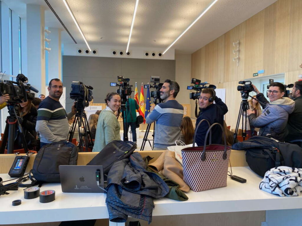 Un salón repleto de medios de comunicación. En la parte trasera, cámaras, muchas cámaras de televisión. En la zona del público, los periodistas, los fotógrafos, de uno a otro rincón para encontrar el mejor enfoque.