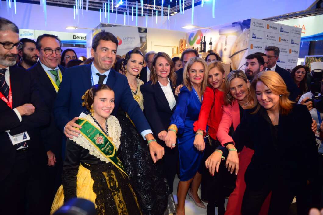 Las reinas de las fiestas, Lourdes Climent y Vega Torrejón, durante su estancia en Fitur, le han puesto la pulsera de la Magdalena 2024 al presidente de la Generalitat, Carlos Mazón, en presencia de la alcaldesa, Begoña Carrasco; las conselleras de Medio Ambiente, Agua, Infraestructuras y Territorio, Salomé Pradas; Servicios Sociales, Igualdad y Vivienda, Susana Camarero e Innovación, Industria, Comercio y Turismo, Nuria Montes y la concejala de Fiestas, Noelia Selma.