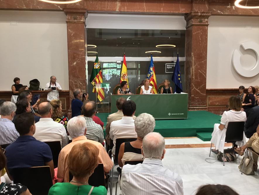 Tras la intervención de Antonio Gascó, la alcaldesa de la ciudad, Amparo Marco ha realizado la entrega de la medalla, que ha sido recibida por la directora del centro, Paloma Segura.