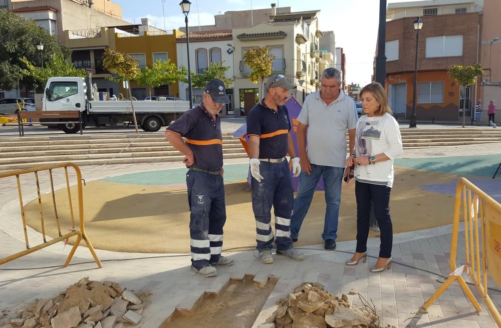 La brigada municipal del Ayuntamiento de la Vall d'Uixó está realizando unas obras de mejora de la plaza del Circo, que tal y como ha señalado la concejala de Urbanismo, Francesca Bartolomé, es "un lugar emblemático de la ciudad y, sobre todo la zona de juegos infantiles, una de las más utilizadas".