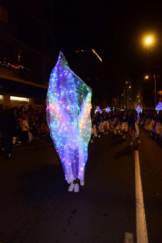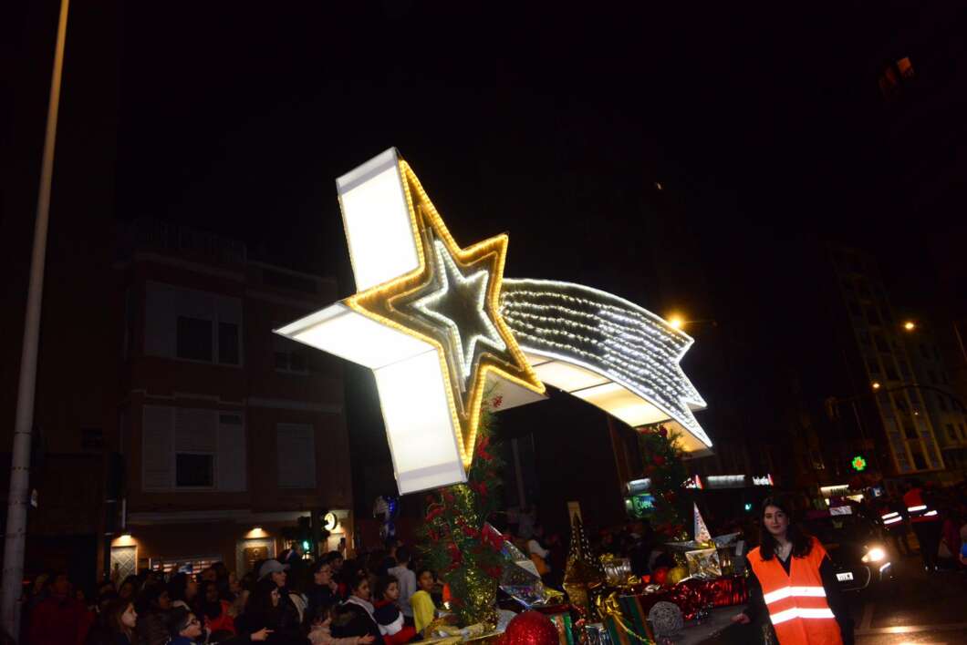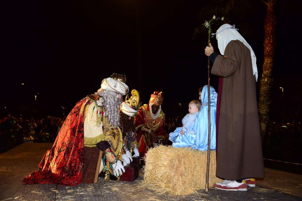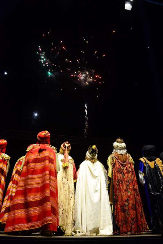 Y aunque el arte de los figurante fue mucho, y la música llenaba todos los rincones, lo más importante fue la aparición de la carroza del Nacimiento, el paso de la Estrella de Navidad, pero, sobre todo, el paso de los tres Reyes Magos, Melchor, Gaspar y Baltasar en sus carrozas.