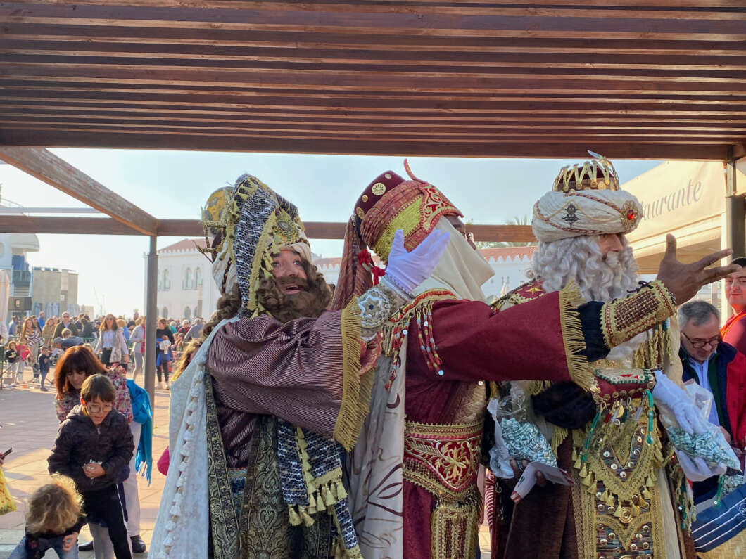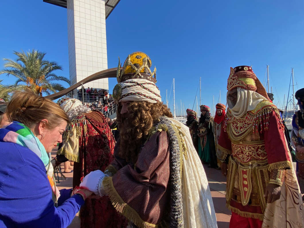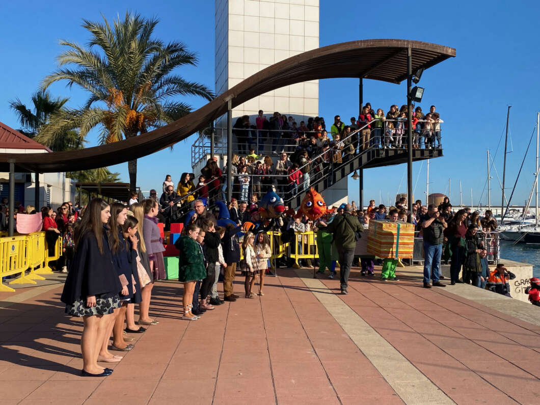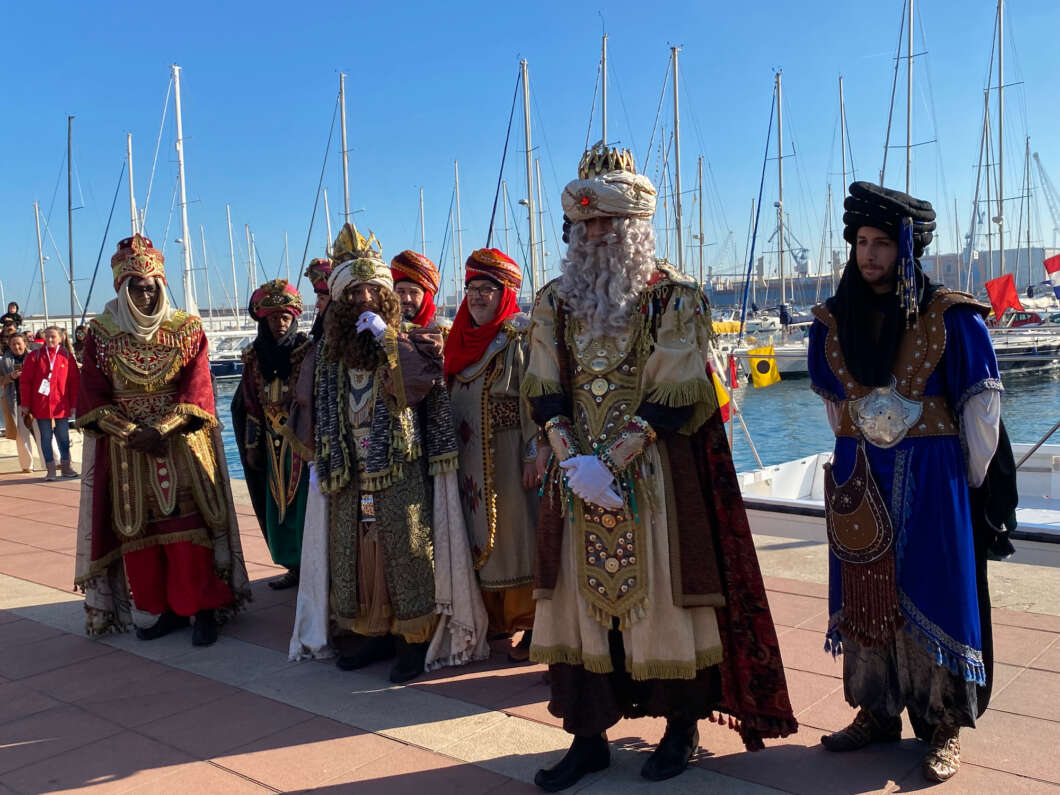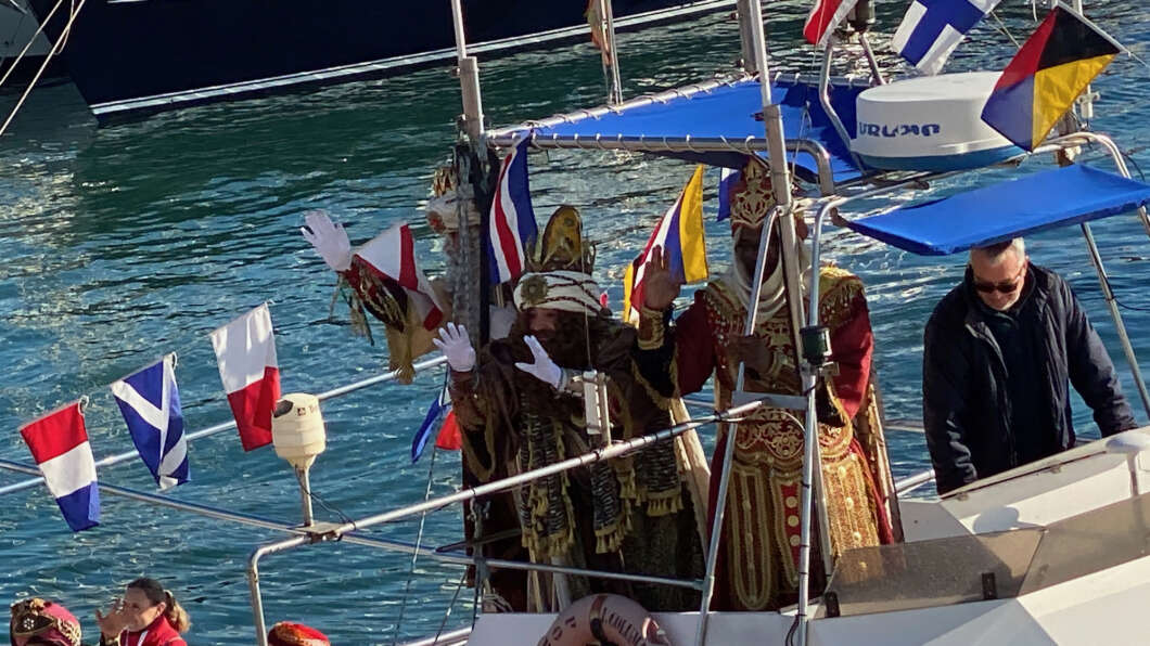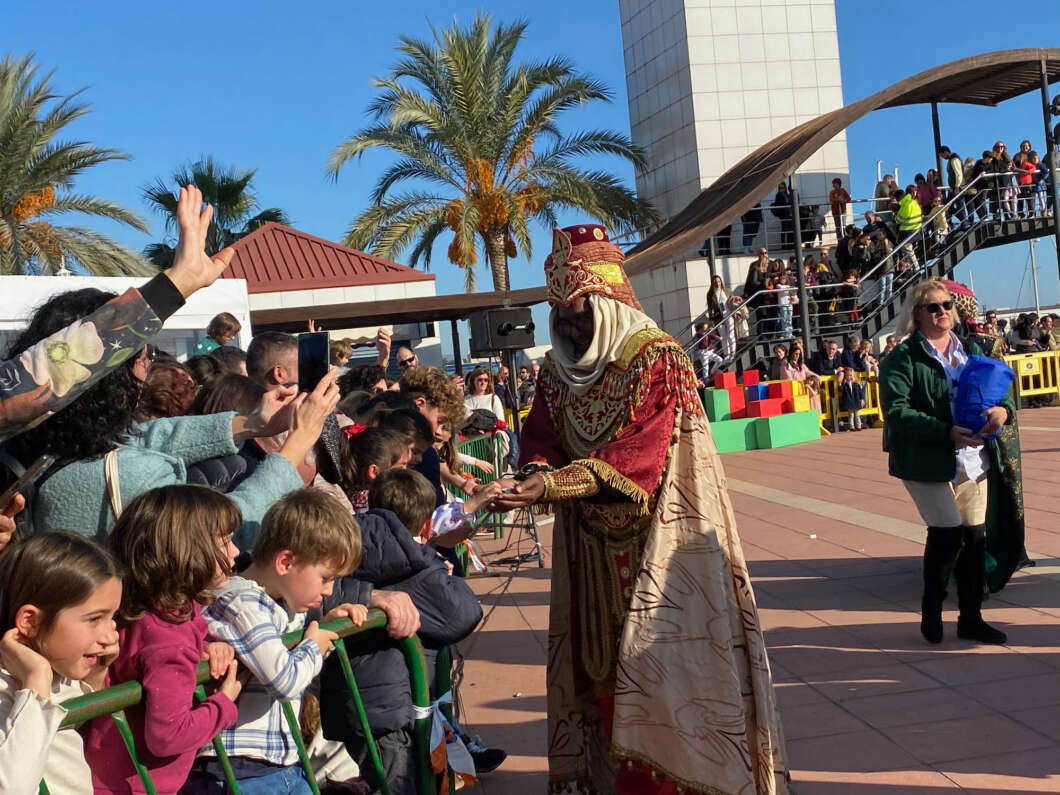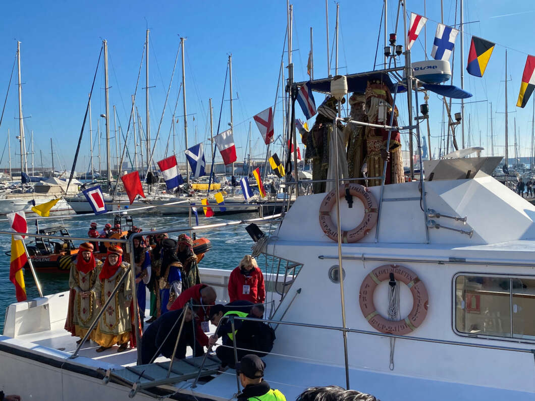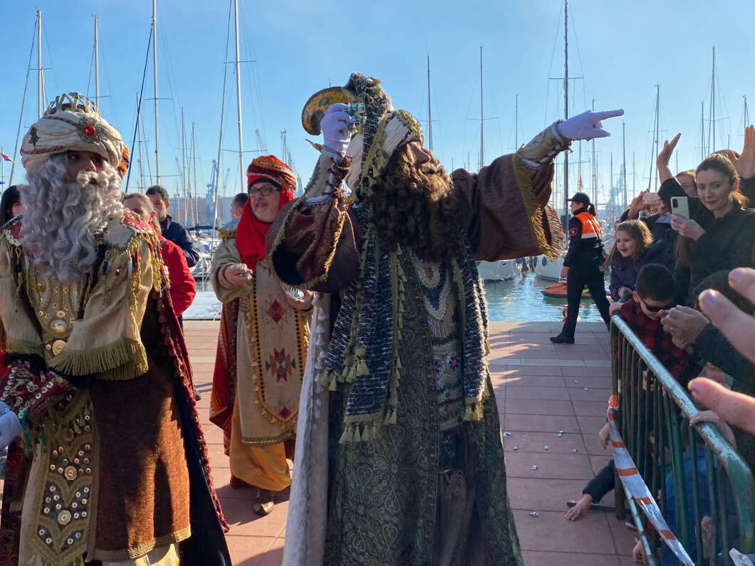 Pasadas las 11:00 horaslos niños comenzaron a vislumbrar en la bocana interior del Puerto la entrada de una comitiva que navegaba rápido hacia el muelle de Costa. Y los pequeños no se equivocaron. Era el Catamarán el Puerto que portaba a los Magos de Oriente acompañado por muchas otras embarcaciones de recreo que les daban escolta.