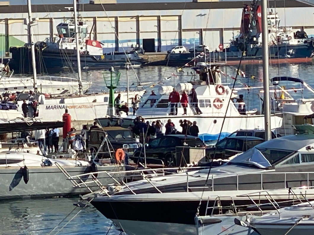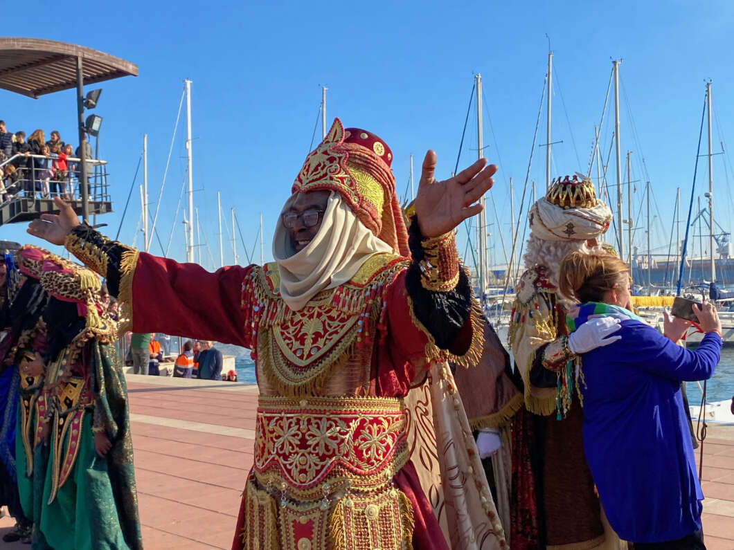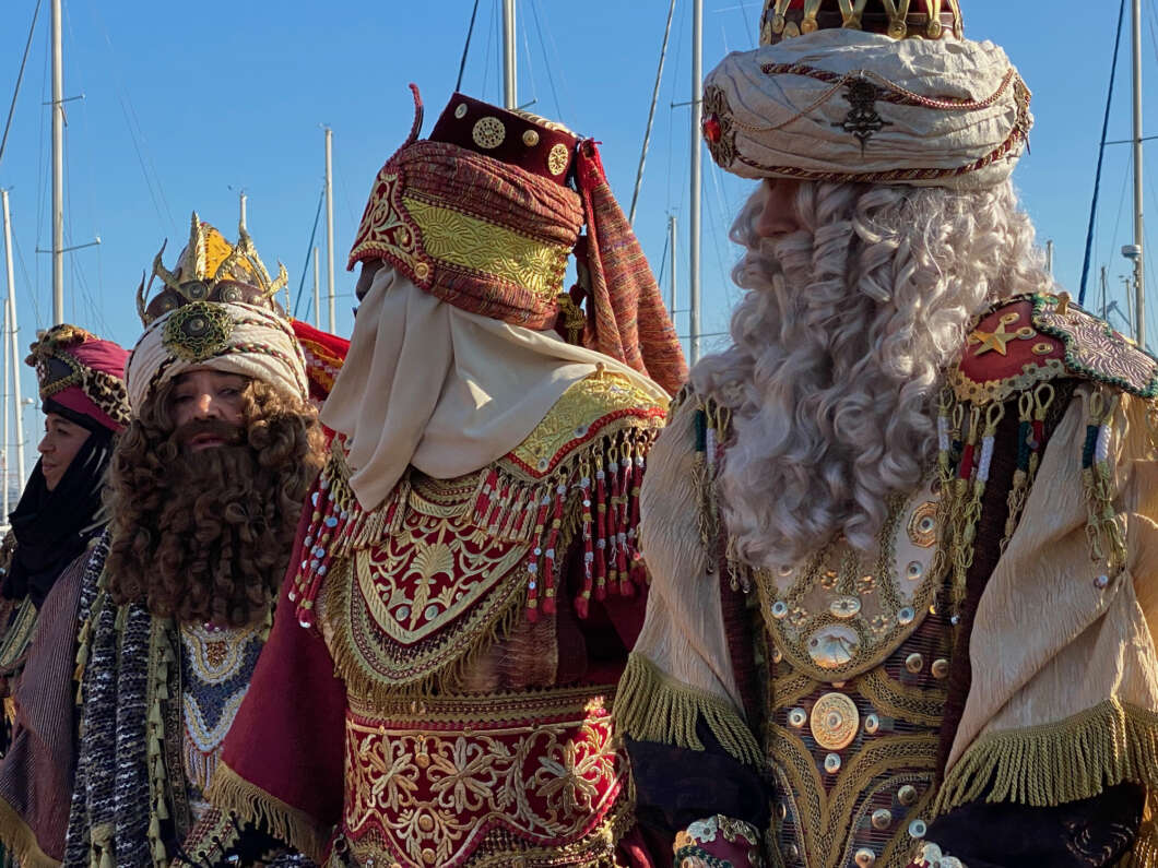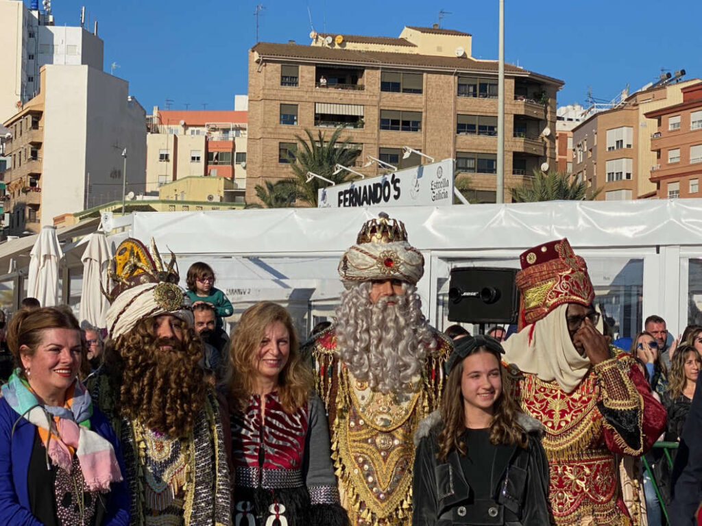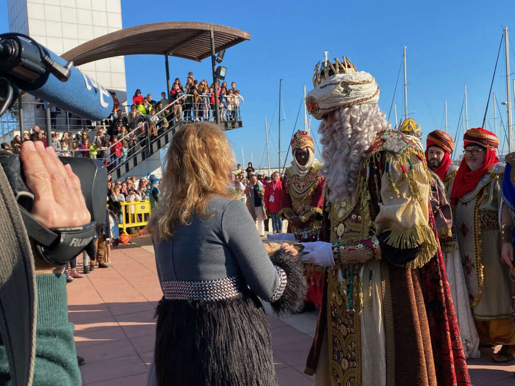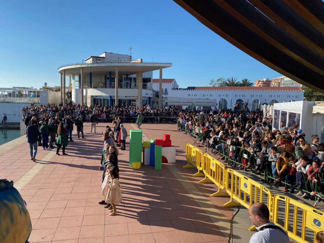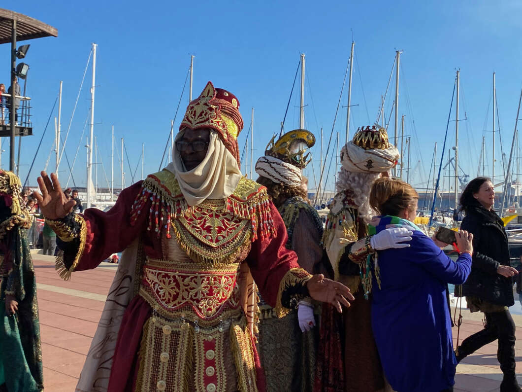 Pasadas las 11:00 horaslos niños comenzaron a vislumbrar en la bocana interior del Puerto la entrada de una comitiva que navegaba rápido hacia el muelle de Costa. Y los pequeños no se equivocaron. Era el Catamarán el Puerto que portaba a los Magos de Oriente acompañado por muchas otras embarcaciones de recreo que les daban escolta.