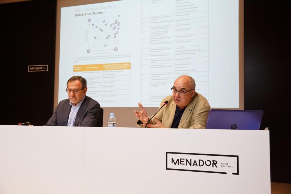 El rector en funcions de la Universitat Jaume I, Vicent Climent, i el comissionat del rector per a la Responsabilitat Social Universitària, el catedràtic d'Ètica Domingo Garcia Marzá, han presentat la primera Memòria de Responsabilitat Social Universitària de l'UJI amb la qual la universitat pública de Castelló rendeix comptes a la societat dels seus principals impactes socials, econòmics i mediambientals. En l'acte de presentació celebrat al Menador espai cultural, Climent ha destacat com la Memòria 2016/2017 de Responsabilitat Social Universitària, "respon de la petjada que deixa la Universitat en el nostre territori, mostra el que fem però també com i per què ho fem. Mostra dades i informacions que ens serveixen per conèixer-nos millor i que la societat conega què fa la Universitat que les Corts Valencianes varen aprovar constituir fa 27 anys per al benefici d'un territori i una comunitat".