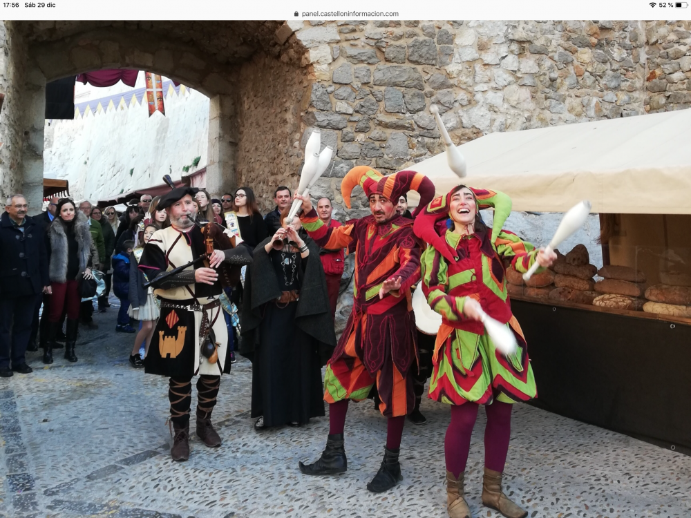 Los visitantes y vecinos de Peñíscola han podido asistir esta mañana a la inauguración del Mercado Medieval que se celebra para despedir este año y recibir el próximo. Durante todo el fin de semana y hasta el día 1 de enero todos los que se acerquen a la localidad podrán trasladarse a épocas del medioevo gracias a las actuaciones, los más de 37 puestos y la ambientación que caracteriza el mercado. Andrés Martínez, alcalde de Peñíscola, junto a la Reina de Fiestas y su Corte de Honor han protagonizado la inauguración del Mercado Medieval de la mano de los músicos y juglares. Las autoridades han podido disfrutar de algunas actuaciones y animación que se han realizado dentro del recinto amurallado. Esta iniciativa del área de Turismo del Ayuntamiento espera contar con una alta aceptación por parte del público y para los próximos días se espera la visita de turistas y curiosos que se acercarán a la localidad para disfrutar de esta propuesta de ocio y comercial en un entorno único y especial, como lo es la Ciudad Antigua.