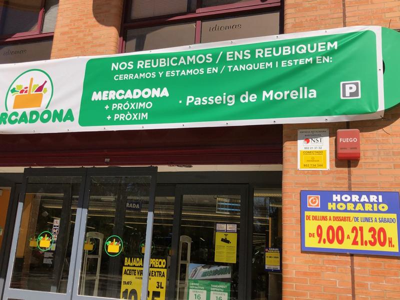 Los Mercadonas de Paseo Ribalta, y avenida Vall D’Uixó de Castellón, cuentan hoy sus últimas horas ya que cerrarán sus puertas definitivamente esta noche. A partir de entonces comenzará la cuenta atrás para que el lunes, 18 de marzo se inaugure la nueva tienda de esta entidad, en el Paseo Morella, con una sala de ventas de 1.700 metros, y 65 plazas de Parking.
