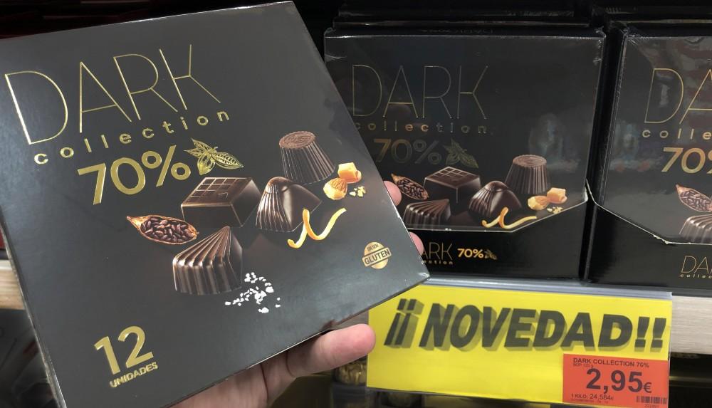 La caja de Dark Collection 70% es el resultado de captar la necesidad de los “Jefes” de disponer de un bombón de alto porcentaje en este formato y también se ha desarrollado siguiendo las indicaciones de los clientes. El Proveedor Totaler de los Senzza Postres es Chocolates Valor, que produce en su fábrica de Villajoyosa (Alicante), y el Dark Collection 70% es de Cantalou (Francia).