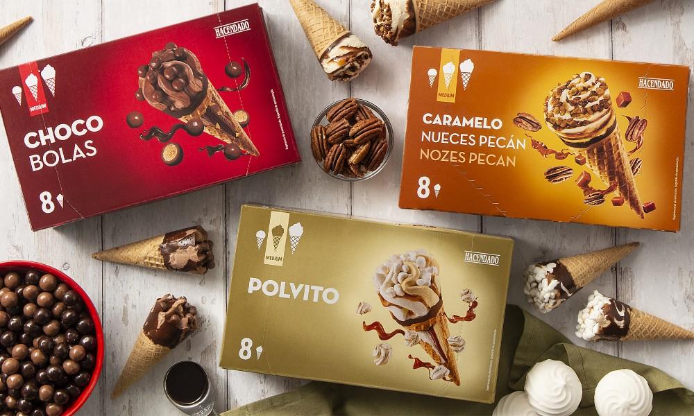 Entre la variedad, disponible durante todo el verano, destaca el Choco Bolas, helado de cacao con bolitas de chocolate con leche, y el Polvito, con sabor a galleta y merengue con salsa de dulce de leche, elaborados por Froneri Iberia en Araia (Álava). Asimismo, el cucurucho de Caramelo con nueces de pecán elaborado por Froneri France en Francia.
