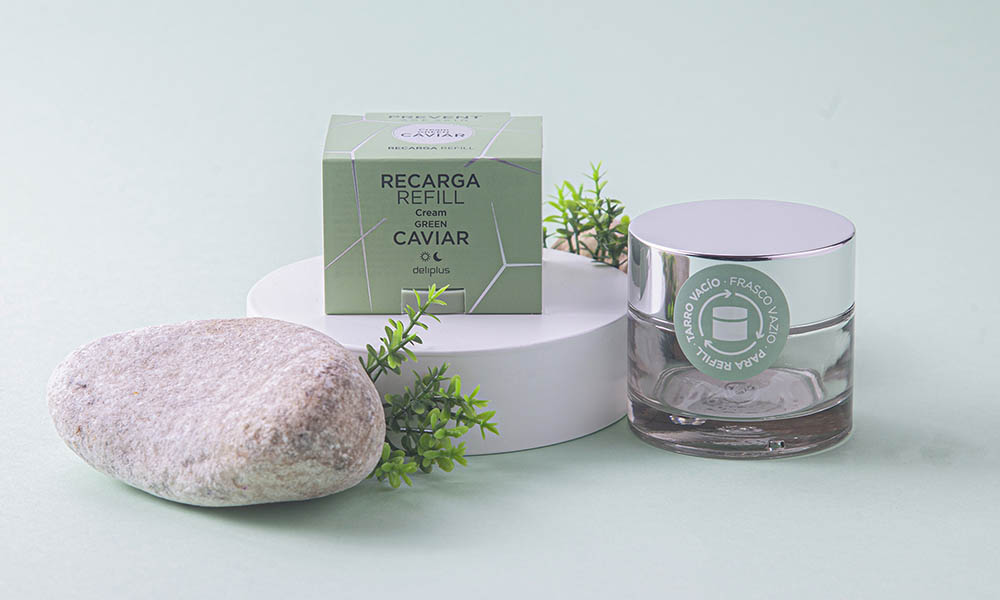 La crema Green Caviar se vende en refills que ajustan con su tarro de vidrio, que se vende por separado, para reducir el desperdicio de envases. Comprometida con los principios de la Economía Circular, Mercadona apuesta por los recambios en sus productos de Perfumería para reducir plástico y sus residuos.