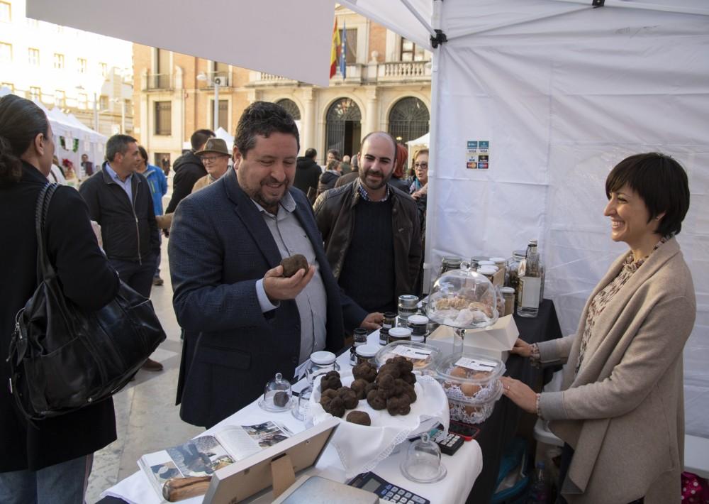 El presidente de la Diputación, Javier Moliner, ha conocido en primera persona la gran variedad de productos, puestos y propuestas de actividades a realizar en este mercado que es la única feria de estas características dedicada a la trufa que organiza el Gobierno Provincial.