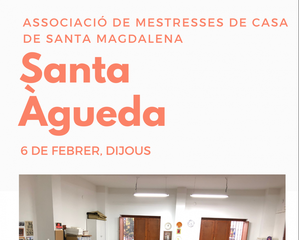 Carmen Aixa, presidenta de l'Associació de Mestresses de Casa de Santa Magdalena, explica que: “de cara a facilitar l'organització de la festa, totes aquelles persones que vulguen participar en el Dia de Santa Àgueda, poden inscriure's en els llocs de costum o bé dirigint-se a qualsevol membre de la Junta Directiva”.