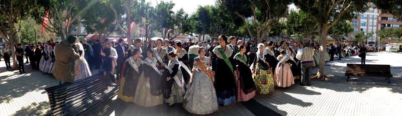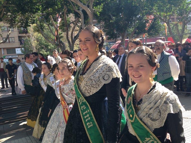 Prego Infantil Magdalena 9III15 (8)Protagonistas de excepción, la reina infantil de la Magdalena, Cristina Batalla con sus damitas de la Ciudad, pero con ellas, también las representaciones de les Fogueres de Alicante, con su reina infantil. Y los representantes de la Junta Fallera, que lideraba la fallera mayor infantil, María Donderis, y su cortejo.