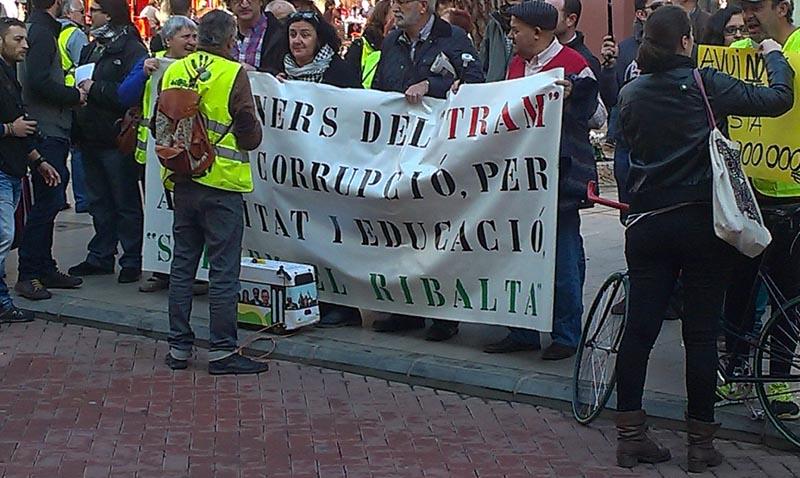 Se habló de realizar esta parada en la plaza Tetuán, pero finalmente se optó, sobre la marcha, por la parada del Casino, quizá para evitar su encuentro con los manifestantes, que también los hubo, liderados por representantes de Izquierda Unida y Bloc Compromís, que, tras protestar en la entrada oeste del Parque Ribalta, se habían trasladado a Tetuán.
