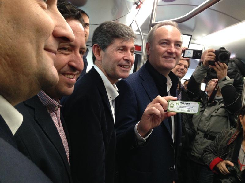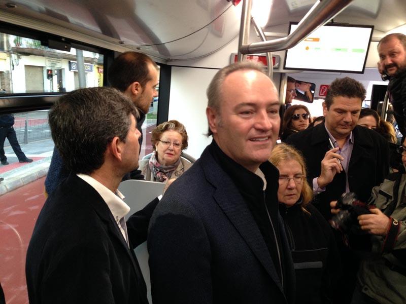 El presidente, Alberto Fabra, visiblemente emocionado, se dejó querer, tanto como el alcalde de la ciudad, Alfonso Bataller, el presidente de la diputación Javier Moliner. Más discreta fue la participación de la consellera Isabel Bonig, que cedió todo el protagonismo a Alberto Fabra, y ocupaba un lugar más atrás junto a los técnicos del Tram y los ciudadanos que también realizaban la ruta.