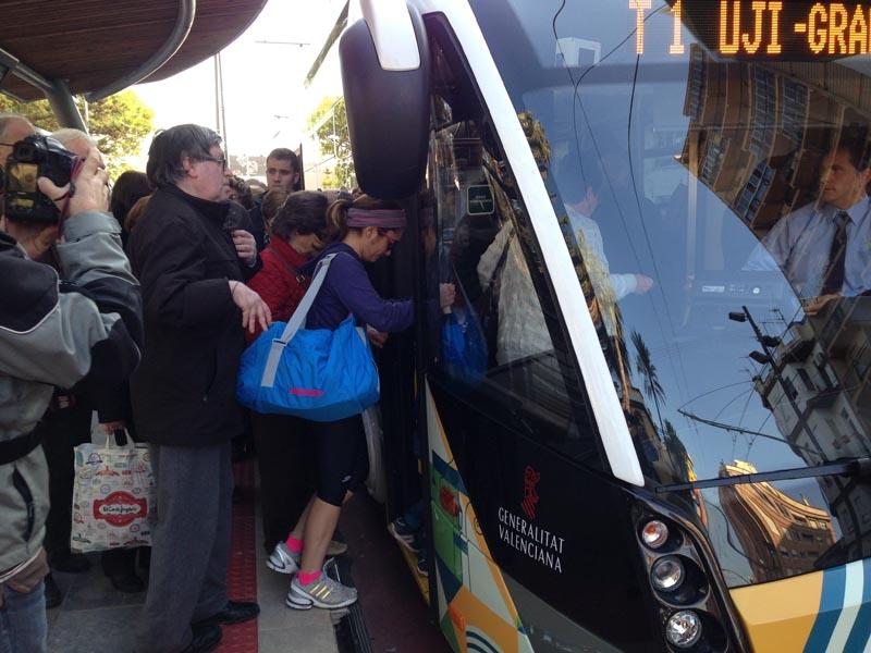 La puesta en marcha del Tram, entre la UJI y el Grao de Castellón ha convertido la jornada en una gran fiesta en la ciudad. El servicio, gratuito hoy, ha fomentado que miles de personas se subieran al Tram para comprobar por si mismos el funcionamiento de esta nueva infraestructuras.