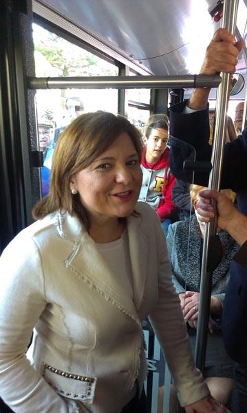 Se comentó entonces, la posibilidad de que la comitiva oficial y los periodistas bajaran en la rotonda de Carrefour, donde previsiblemente no habría tanta gente y se daban buenas condiciones para realizar el trabajo. Pero también está parada estaba llena de gente que esperaba para montar en el Tram. Con el autobús a tope, el conductor ni se lo pensó, pasó de largo.