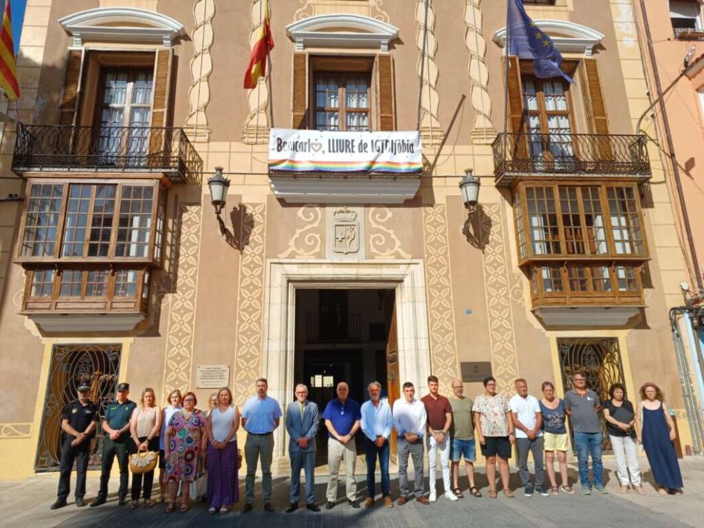 Frente a las puertas del Ayuntamiento de Benicarló, responsables municipales, encabezados por la alcaldesa, y numerosos vecinos han expresado su rechazo absoluto a la violencia machista.